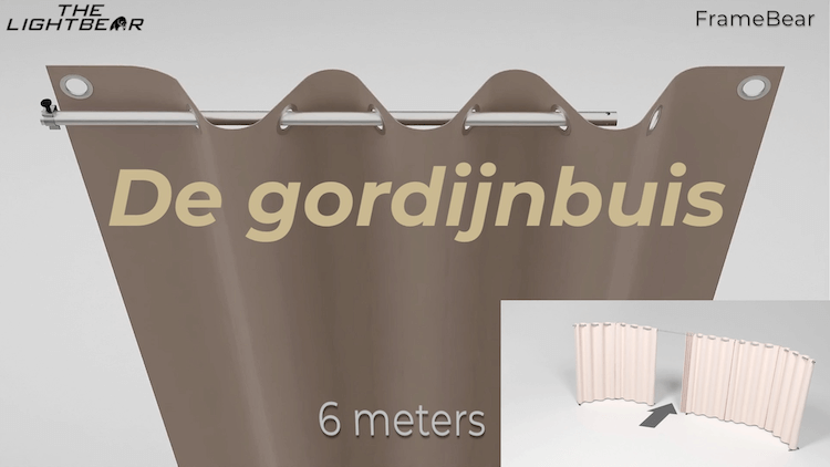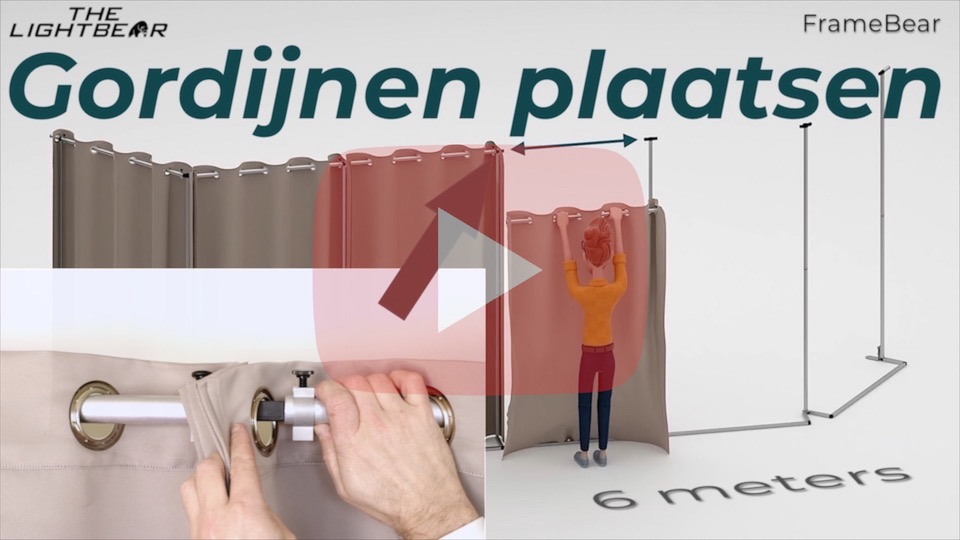 Als je de gordijnen op de juiste manier plaatst zie je (als je VOOR het scherm staat) slechts een zwevende gordijnbuis waar de gordijnen aan hangen.